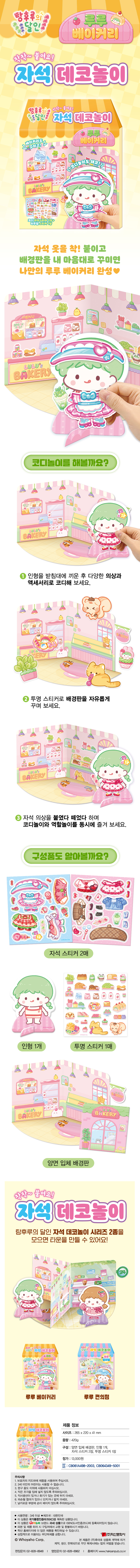 탕후루의 달인 자석 데코놀이 - 루루 베이커리 캐릭터팀 기타 놀이북 0 7401 2023.12.15 11:16 탕후루의 달인 자석 데코놀이 - 루루 베이커리 가격 13,000원 사이즈 170X220X10mm 구성 양면 입체 배경판, 인형 1개, 자석스티커 2장, 투명스티커 1장 중량 150g 제조년월 2025-09-26 제조국 대한민국 판매처 교보문고 예스24 알라딘 다음 상품 설명문구 자석으로 코디와 배경 꾸미기를 한번에 즐길 수 있는 자석 데코놀이! 상세이미지 자석으로 코디와 배경 꾸미기를 한번에 즐길 수 있는 자석 데코놀이!